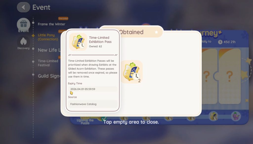 With the release of the Forestbell Spell Banner, players will need a lot of Exhibition Passes to pull exhibits from the banner. My Little Pony’s pre-event is the perfect opportunity to earn 12 Exhibition Passes. These are enough to draw 2 exhibits from the new banner. As these are free exhibition passes, it does not hurt to try your luck to get exclusive exhibits for the character, pets, and the house.